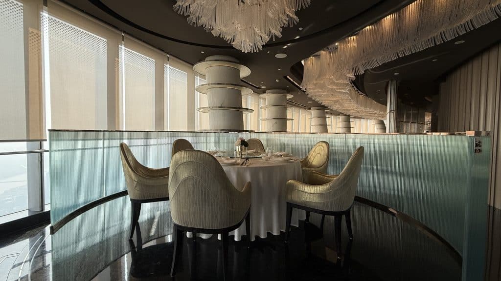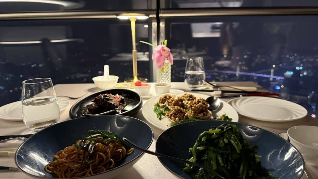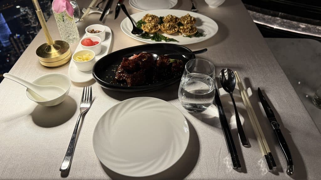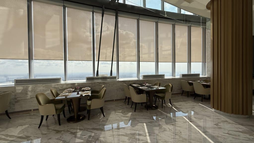 Trotz der Besonderheit eines Dinners im höchsten Restaurant der Welt und des Ausblicks würde ich definitiv keine Empfehlung aussprechen. Ich würde eher zu einem der anderen Restaurants im Hotel raten. Hier lohnt auch der Hinweis, dass Hotelgäste immer 20 Prozent Rabatt in hauseigenen Restaurants erhalten. Darauf hatte uns natürlich niemand beim Check-in hingewiesen. Entsprechend war dies sicherlich noch die positivste Überraschung des Abendessens.