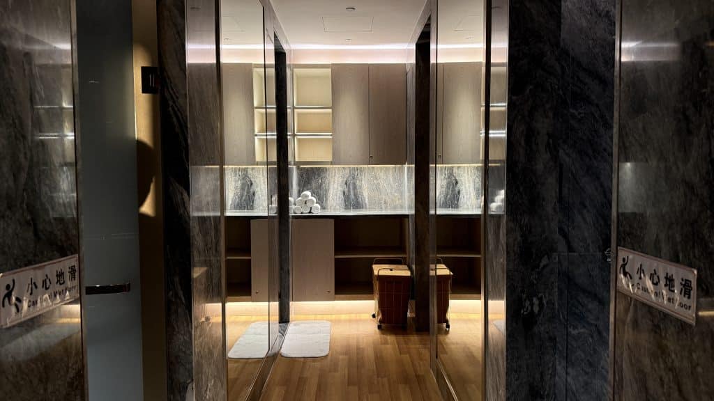 So gibt es hier, anders als in den meisten Luxushotels in China, auch keine Sauna. Einen Jacuzzi oder Ähnliches sucht man in den Umkleiden genauso wie am Pool zudem vergeblich.