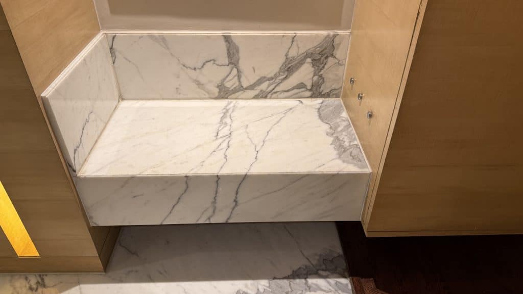 Bei meinem JW Marriott Mumbai Juhu Test konnte ich mir ein Bild von einem regulären Zimmer machen. Dieses bietet einen mittelgroßen Eingangsbereich, in dem es unter anderem eine Kofferablage in Marmoroptik gibt.