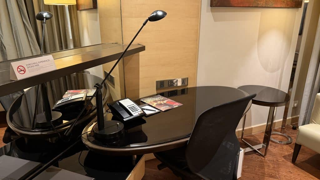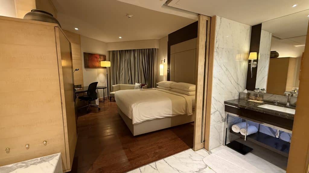 Mein Eindruck vom Design und Stil des Zimmers war per se nicht schlecht, ein wenig erinnert fühlte ich mich auch an meine JW Marriott Delhi Aerocity Bewertung. Man merkt dem Hotel allerdings nicht nur am Boden, sondern auch bei den Einrichtungsgegenständen durchaus an, dass es schon einige Jahre auf dem Buckel hat.