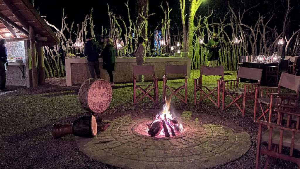 Das Abendessen wird abwechselnd im Restaurant und unter freiem Himmel, in der sogenannten Boma, serviert. Während es im Restaurant eine kleine, aber ansprechende Karte, aus der man auswählen kann, gibt, wird in der Boma das Abendessen in Form eines Buffets sowie mit einem Live-Barbecue dargeboten. Dazu gibt es kleine Showeinlagen der Mitarbeiter, die das traditionell Afrikanische aufgreifen. Abschließend sei erwähnt, dass es, zusätzlich zu den Mahlzeiten im Restaurant, auch die Möglichkeit gibt, private Dinner-Erlebnisse zu buchen, etwa in der eigenen Suite oder an ausgewählten Orten im Reservat.