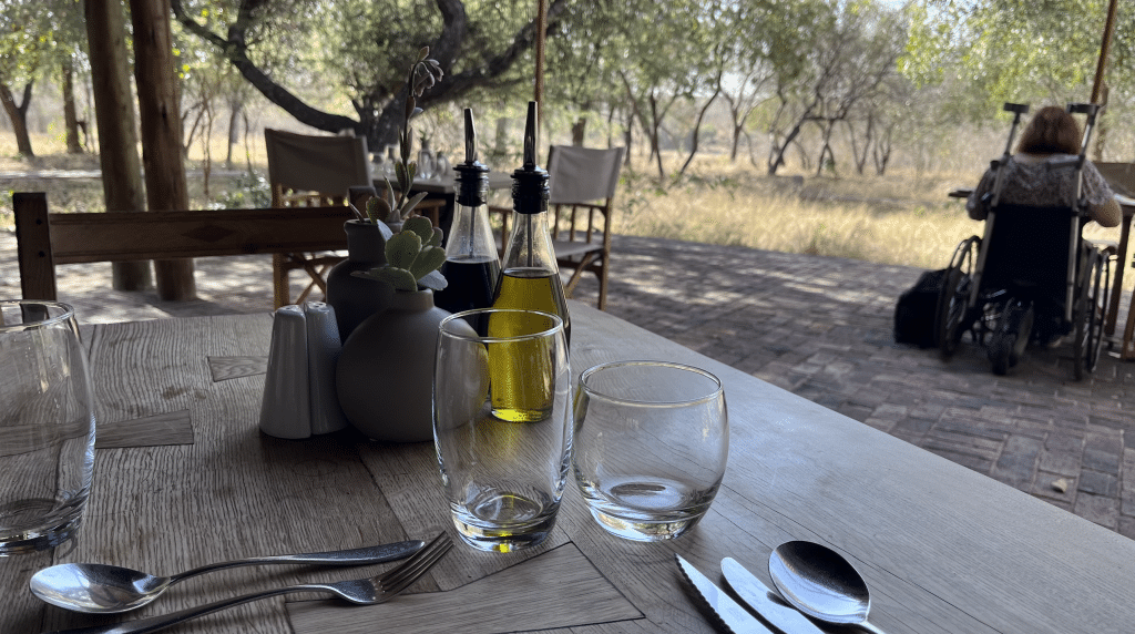Im Southern Camp werden alle Mahlzeiten im Restaurant der Lodge serviert, das sowohl Innen- als auch Außenbereiche bietet, wobei die Innenbereiche nicht gänzlich geschlossen und ebenfalls an der frischen Luft sind. Vor dem ersten Game Drive am Morgen werden hier Tee, Kaffee sowie Muffins oder Croissants gereicht, sodass man nicht hungrig auf die Pirsch gehen muss.