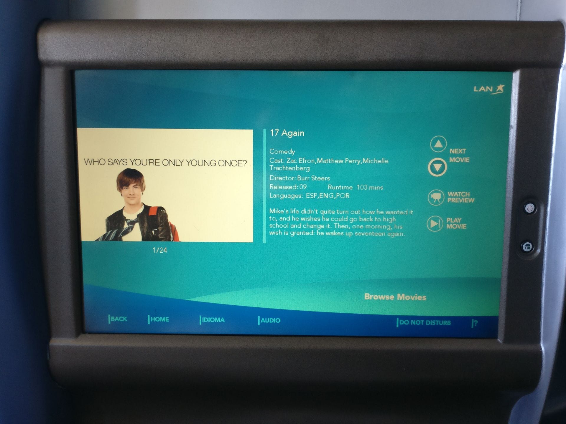 Das Entertainment-Angebot in der LATAM Business Class in der Boeing 767 war insgesamt etwas ausbaufähig. Auf dem Flug innerhalb Südameriaks wurden zwar Zeitungen und Zeitschriften angeboten, auf Englisch gab es allerdings keine einzige. Auf dem Flug nach Los Angeles gab es immerhin eine New York Times. Ansonsten kann man sich mit dem Entertainment System vergnügen.