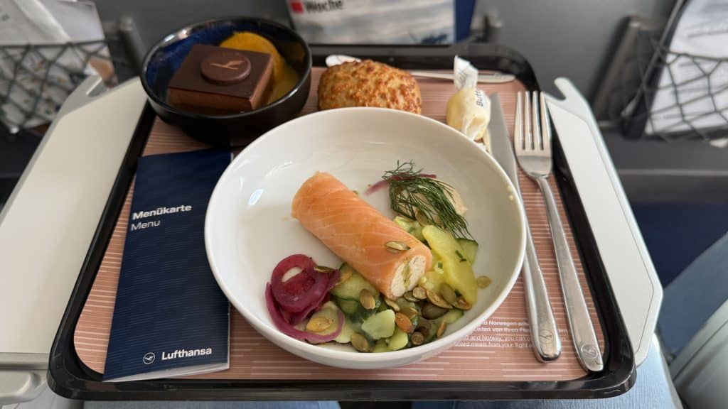 Im Jahr 2025 hat die Lufthansa endlich ein neues Catering auf Strecken innerhalb Europas eingeführt, das eine klare Verbesserung gegenüber zuvor darstellt. Auf etwas längeren Strecken gibt es teilweise sogar schon vor dem Start eine Flasche Wasser und Nüsse.