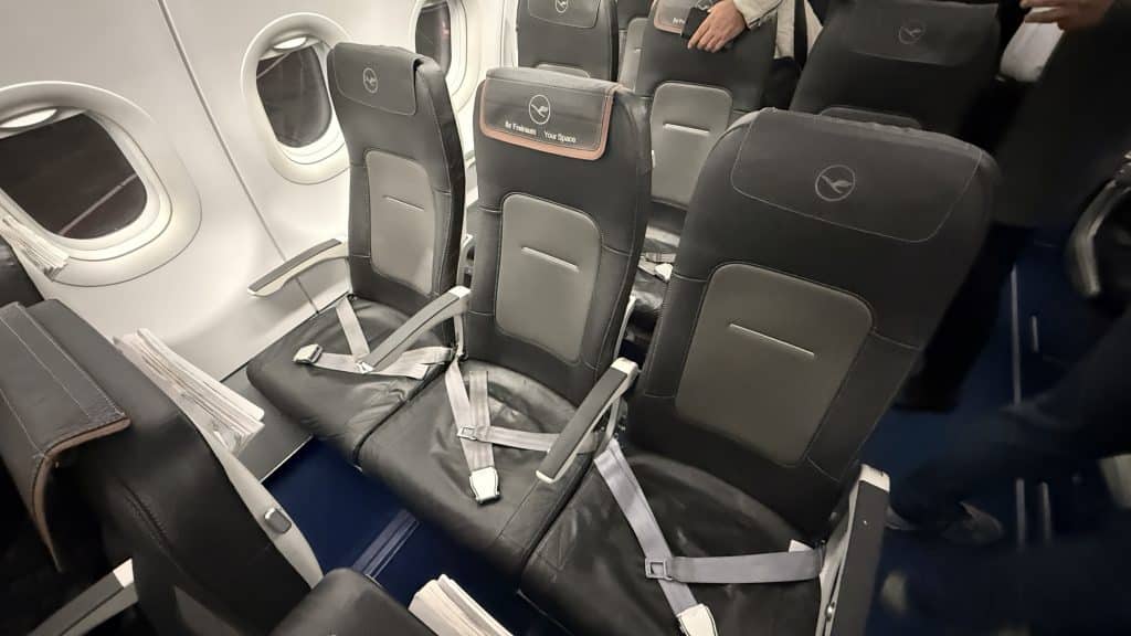 Keine allzu großen Erwartungen möchte ich in meiner Lufthansa Business Class Bewertung auf der Kurz- und Mittelstrecke für die Sitze schüren. Diese nämlich sind identisch zur Economy Class.