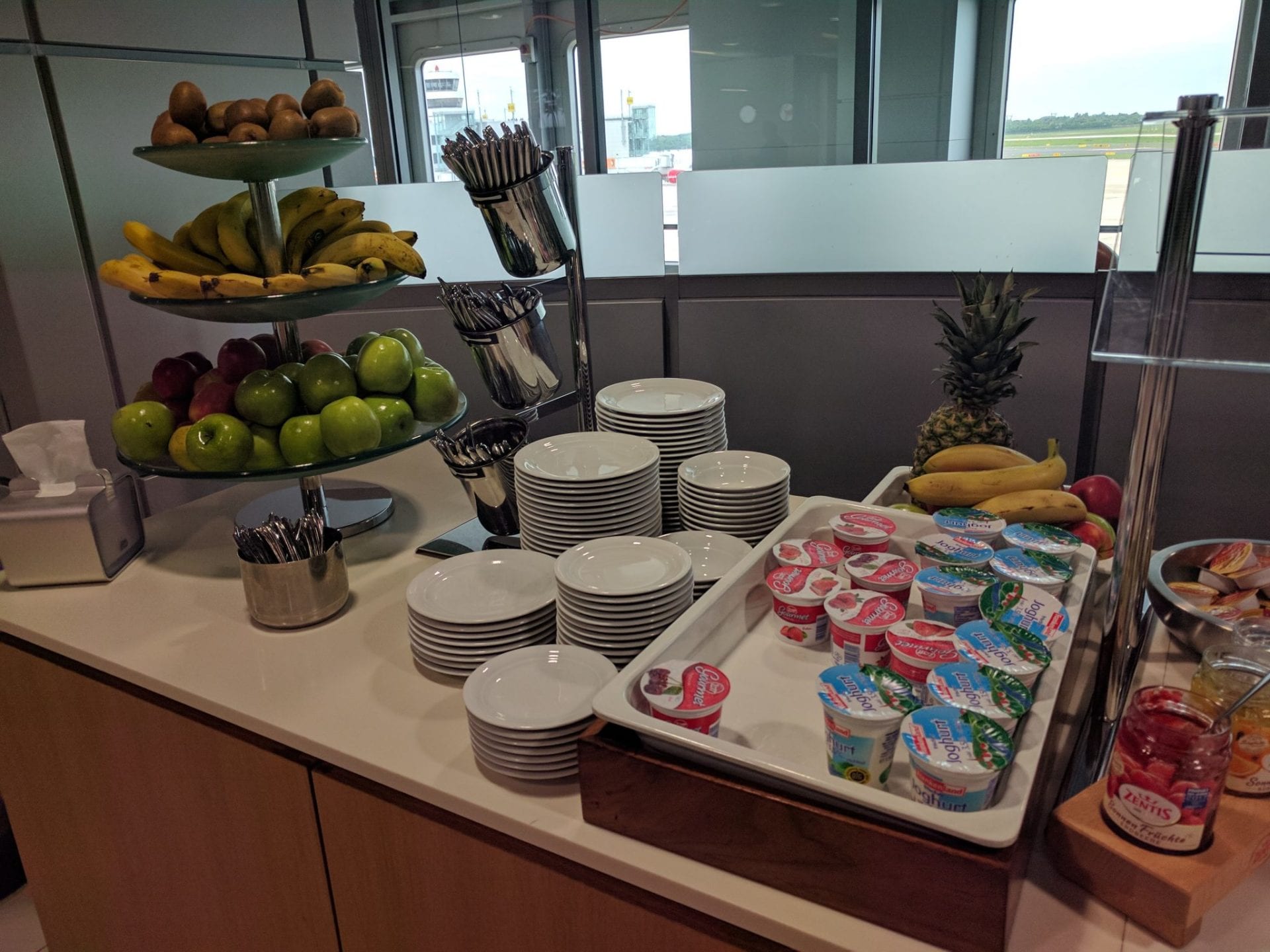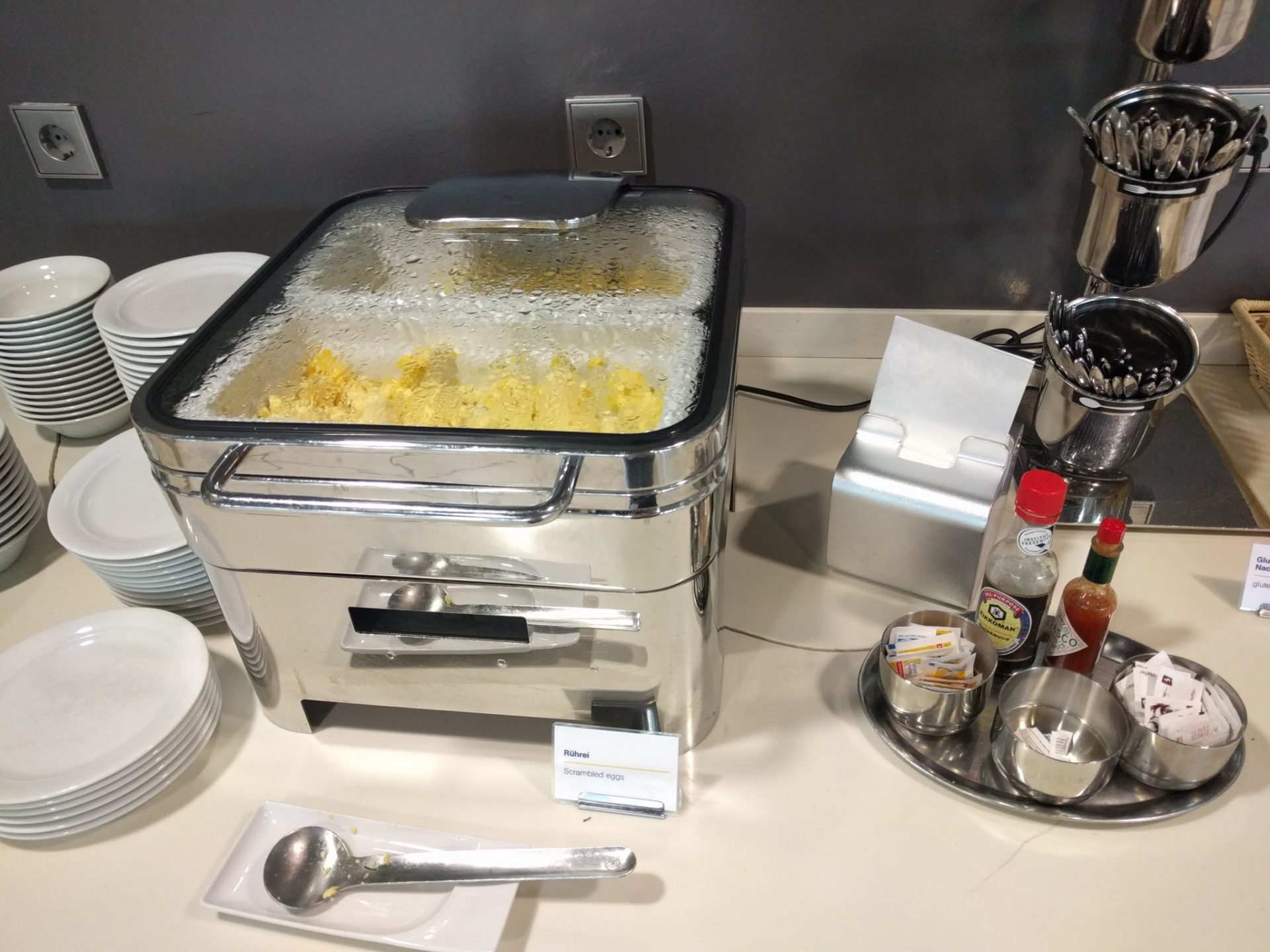 Das Büffet in der Lufthansa Lounge Düsseldorf entspricht dem üblichen Lufthansa Standard. Zum Frühstück gibt es in der Lounge neben einem kontinentalen Büffet auch Rührei. Ansonsten ist die Auswahl aber etwas kleiner als in der Lufthansa Senator Lounge, sollte für ein schnelles Frühstück am Morgen aber definitiv ausreichen.