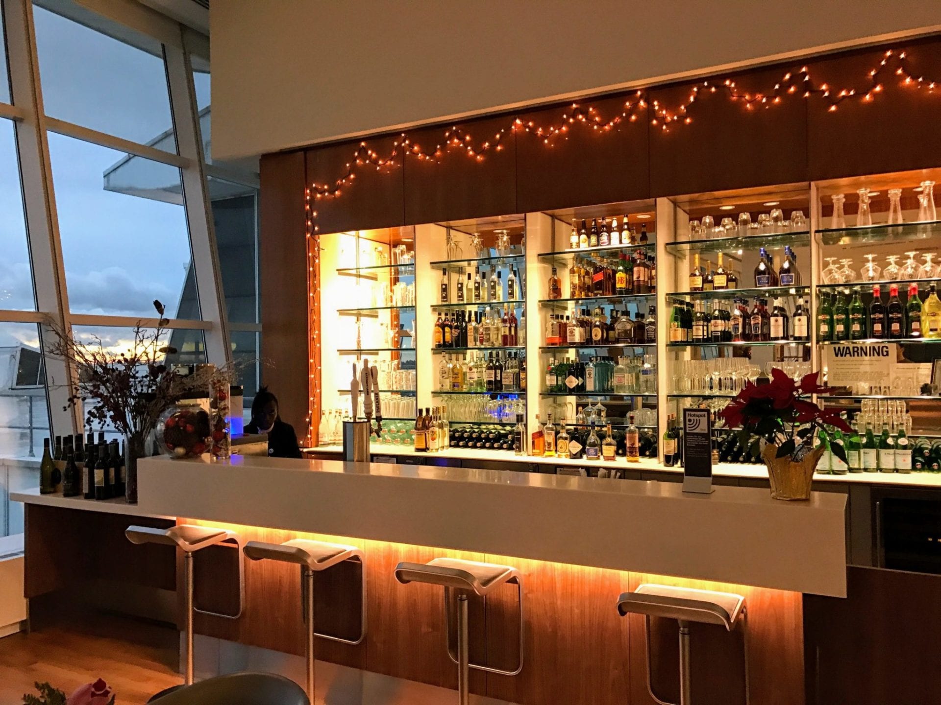 Die Bar dafür sorgt dafür, dass Ihr einen Cocktail oder ein Glas Wein mit einem schönen Ausblick auf das Rollfeld genießt. Softdrinks sowie Kaffee und Tee stehen selbstverständlich auch zur Verfügung.