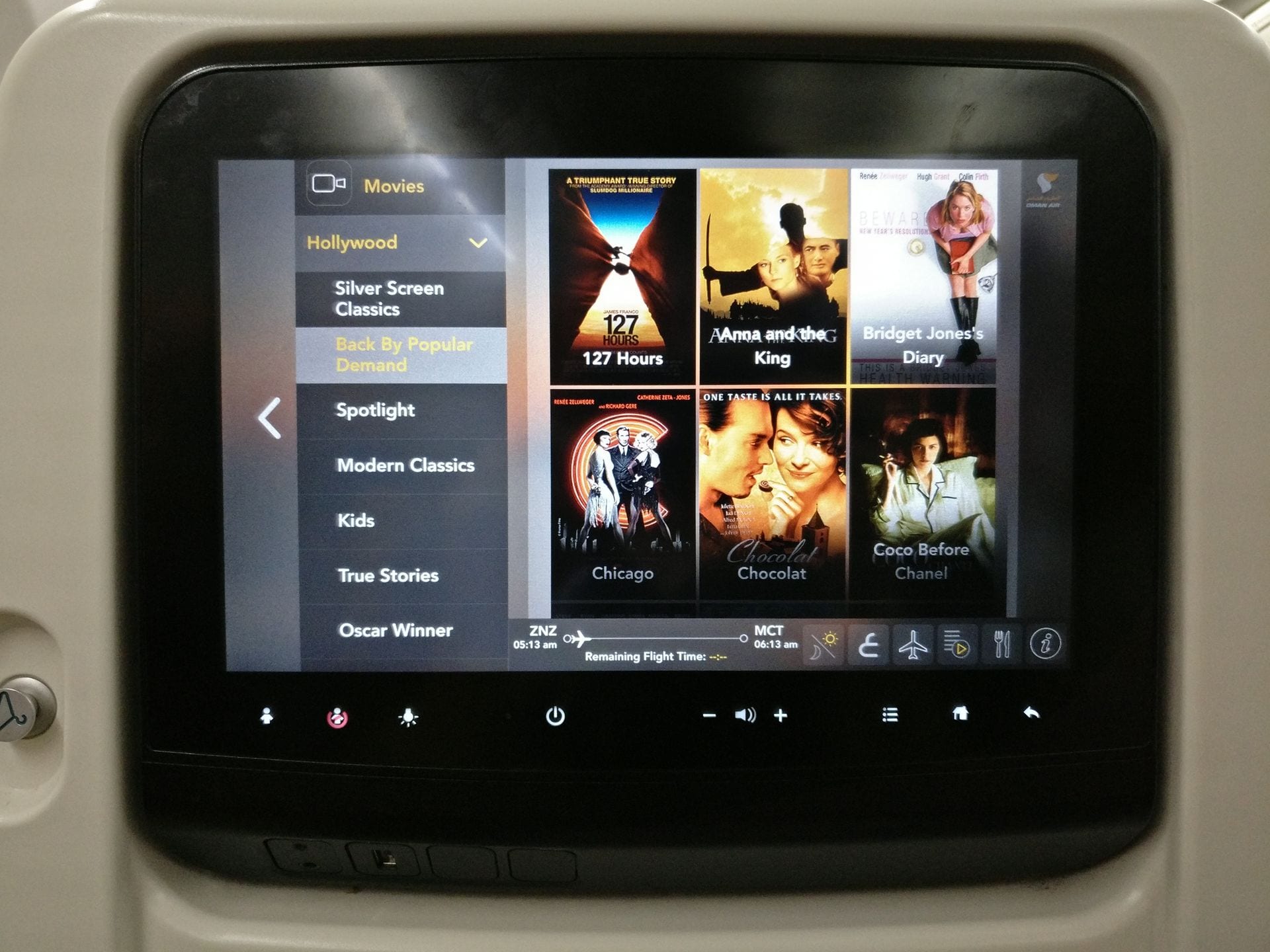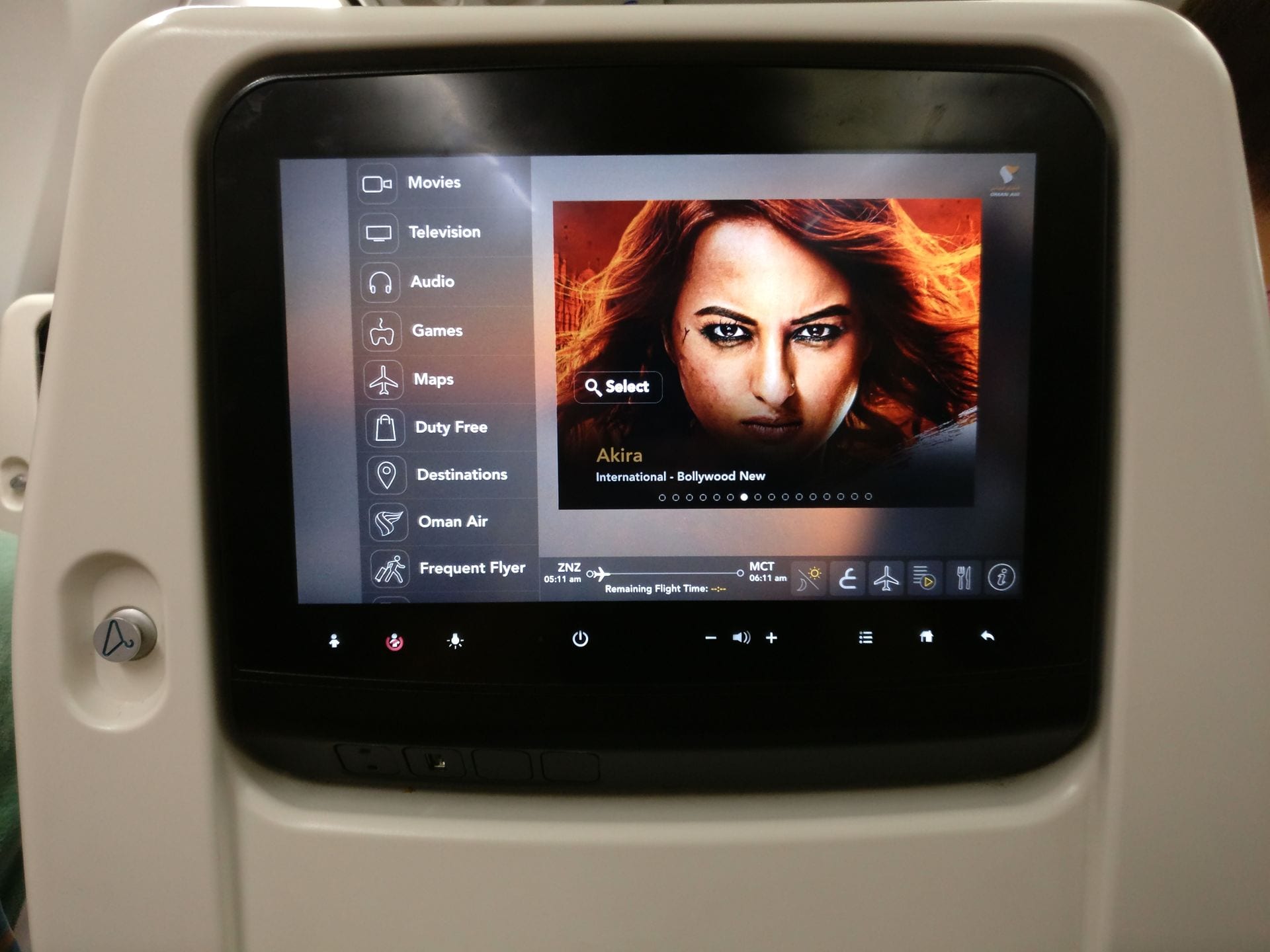 Oman Air Economy Class Boeing 737 – das Entertainment
