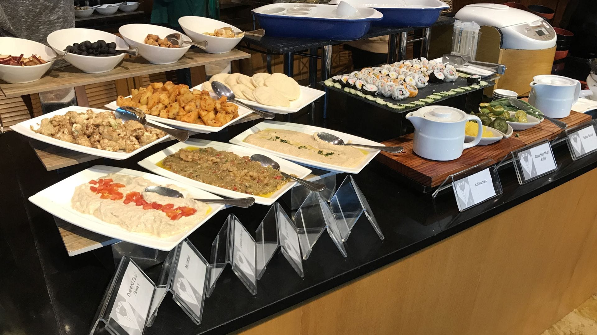 Auch mehrere asiatische warme Gerichte stehen zur Wahl. Für den westlichen Geschmack gibt es aber auch eine frische Eierstation sowie die Möglichkeit Waffeln und Pfannkuchen zu bestellen.