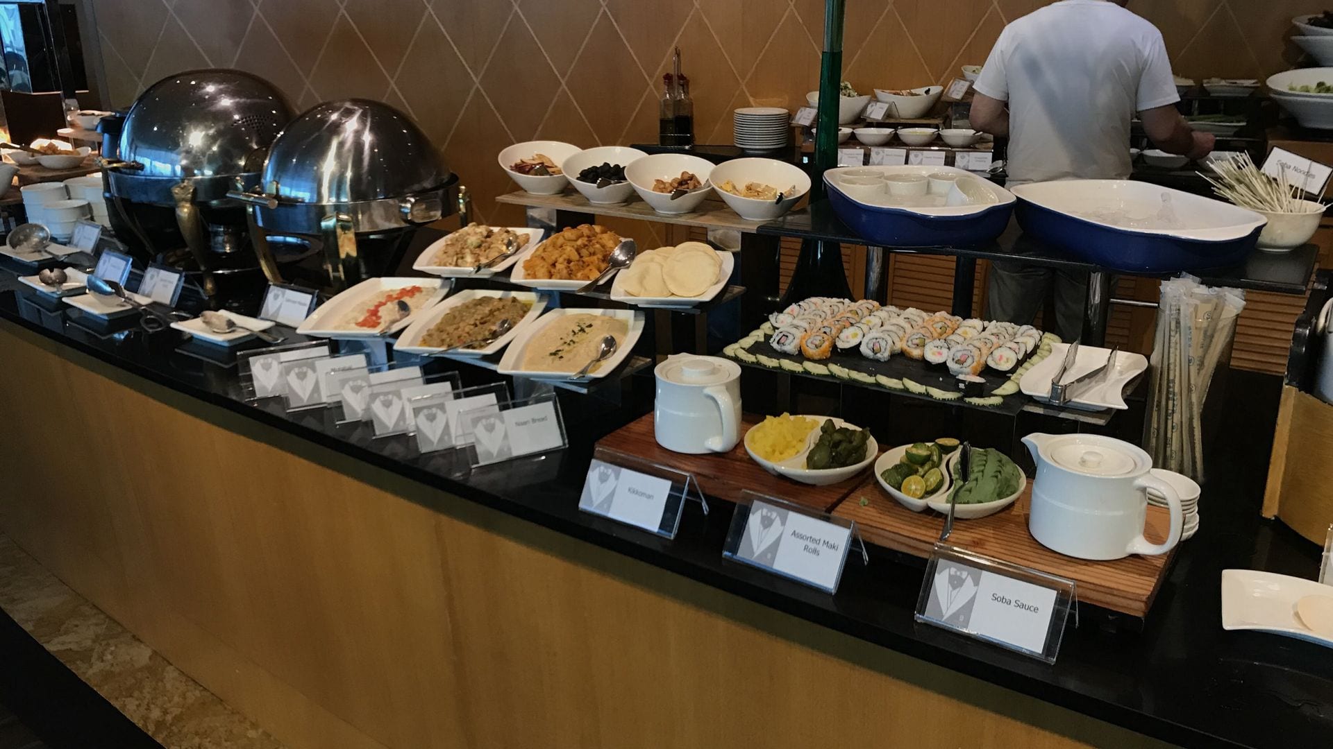Das Frühstücksbuffet selbst ist sehr umfangreich und bietet alles, was man von einem guten Hotelbuffet erwartet. Hinzu kommen, wie in Asien typisch noch einige etwas kuriose Frühstücksoptionen, etwa ein ganzes gebratenes Hähnchen, an dem man sich bedienen kann.