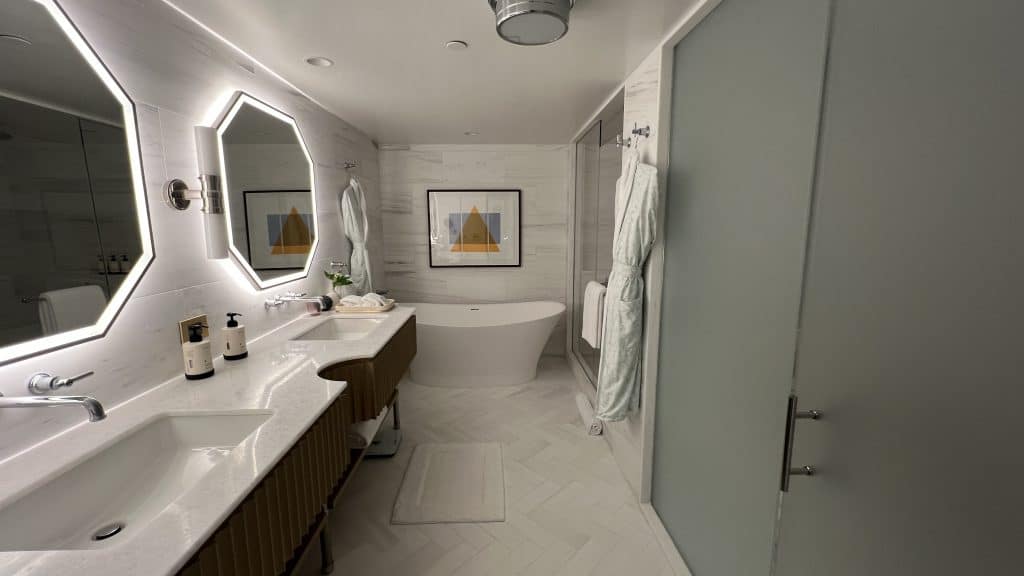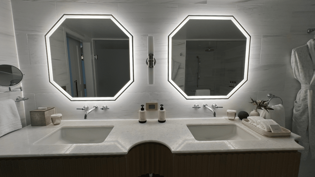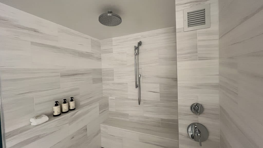 Die beiden Duschköpfe sehen derweil zwar gut aus, lassen bei der Qualität allerdings ein wenig zu wünschen übrig – der Wasserdruck ist zwar nicht schlecht, aber auch nicht so gut, wie man es in einem Hotel auf diesem Level erwarten würde.