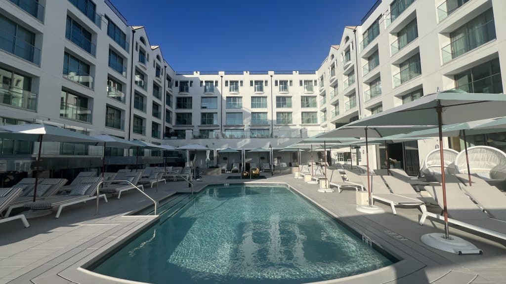 Nicht komplett testen konnte ich bei meiner Regent Santa Monica Bewertung den Erholungsbereich, weil dieser teilweise noch im Bau war. So war der Fitnessraum beispielsweise noch nicht zugänglich, stattdessen wurden Tagespässe für ein Premium-Fitnessstudio in der Nähe angeboten. Teil meiner Regent Santa Monica Bewertung ist allerdings ein Blick auf das Spa und den Pool des Hotels.