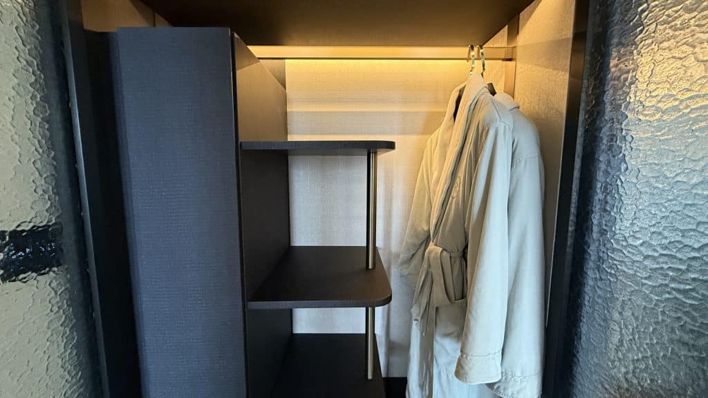 Dort befinden sich noch einige weitere Utensilien, etwa die sehr hochwertigen Bademäntel und Badeschuhe.