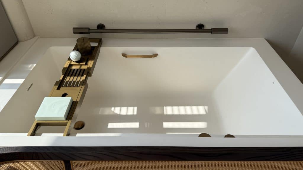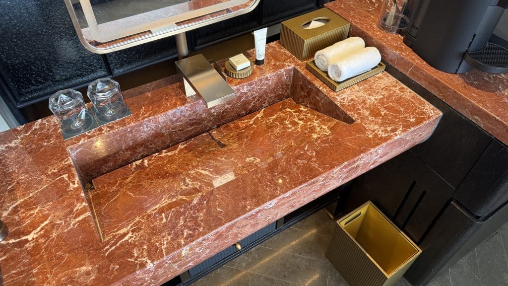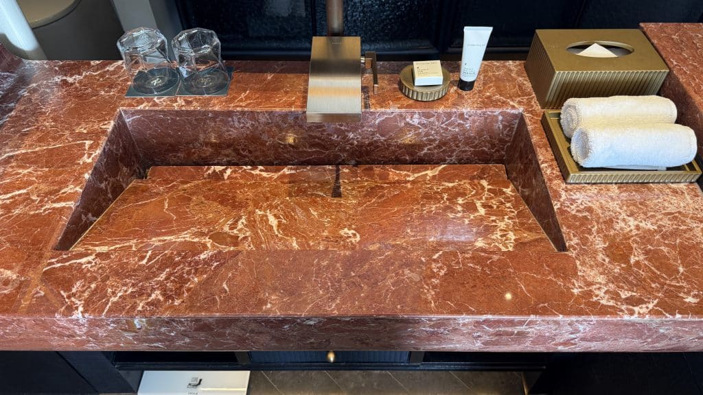 Insgesamt sicherlich ein besonders Badezimmer, das ich so vom Schnitt her auch noch in keinem anderen Hotel gesehen habe. Dagegen wirken selbst die Badezimmer meiner W Amsterdam Bewertung oder meines W Algarve Reviews klassisch.