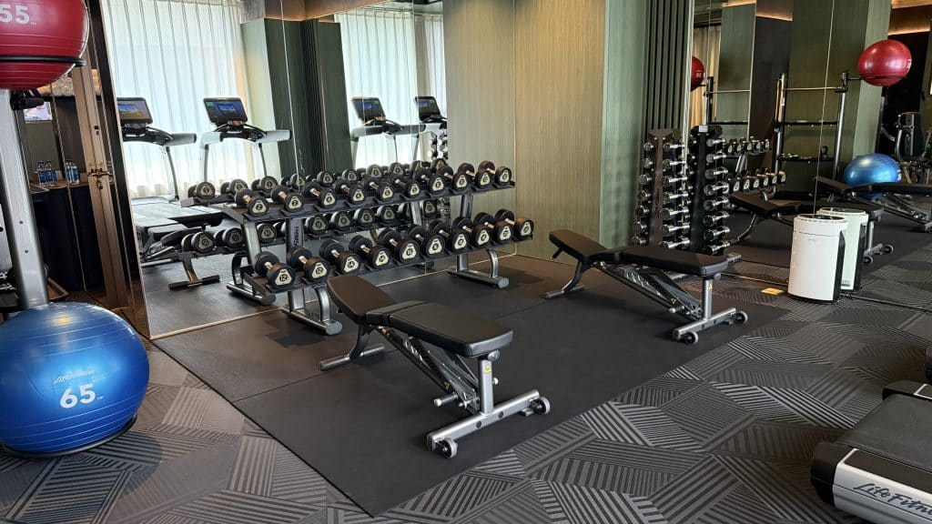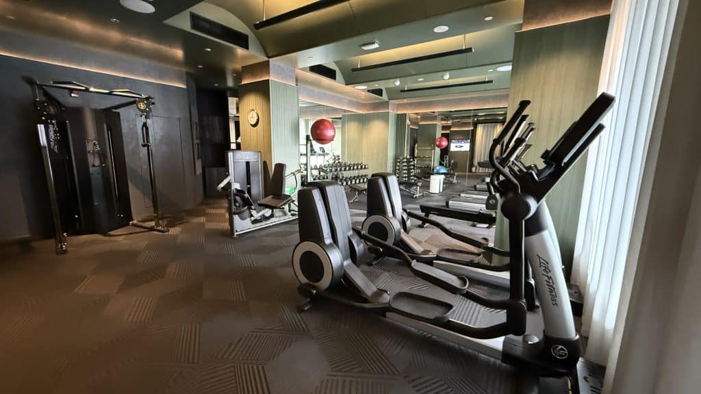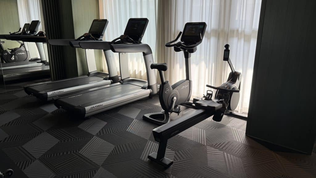 Die Auswahl an Geräten ist erwartungsgemäß bei einem Boutique-Hotel nicht allzu groß, allerdings findet man dafür moderne Geräte – etwa eine breite Auswahl an verschiedenen Geräten für das Cardio-Training, darunter auch eine Rudermaschine.