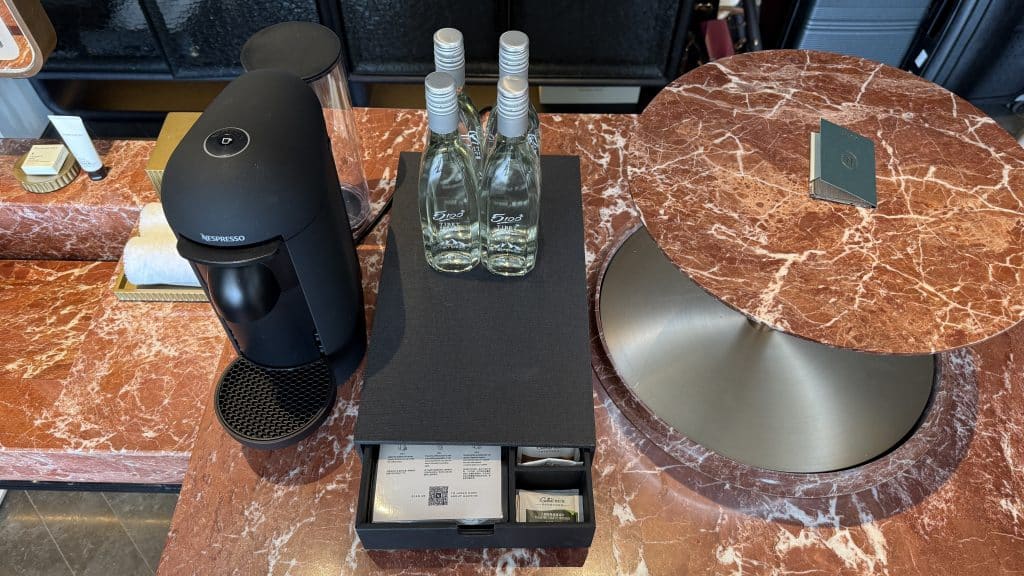 Teil des Eingangsbereichs ist auch eine Nespresso-Kaffeemaschine, die mitsamt Kapseln und Milch kostenfrei genutzt werden kann.