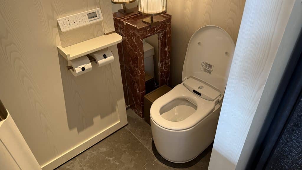 Zuletzt sei noch erwähnt, dass im Eingangsbereich hinter einer Milchglastür auch noch eine japanische Toilette mit umfangreichen Funktionen zu finden ist. Da die Tür allerdings nicht komplett schließt, empfand ich die Privatsphäre hier nicht ideal.