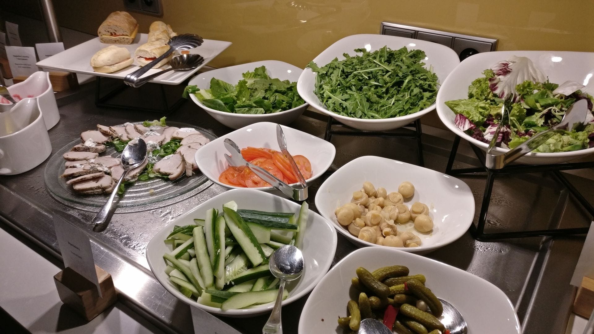 Ab 17 Uhr beginnt dann bereits das Abendessen mit zwei warmen Gerichten, Sandwiches und einer Salatauswahl.
