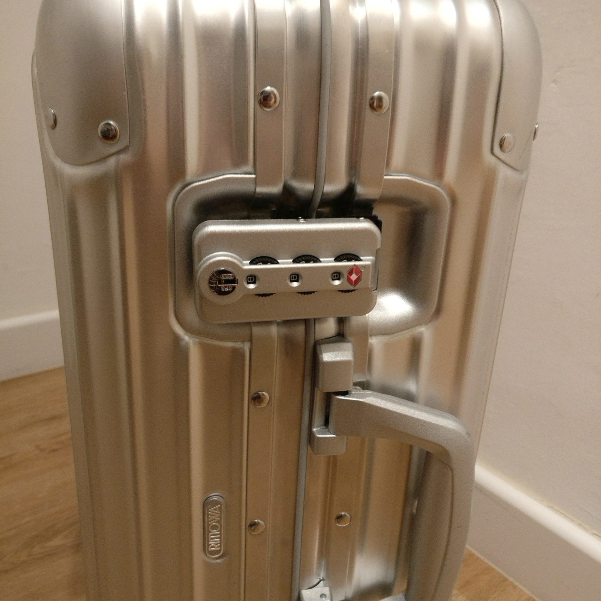 Der Koffer besteht aus dem Rimowa-typischem Aluminum im Rillenmuster. Dass der Koffer aus Metall statt Polycarbonat oder Stoff besteht, gibt ihm eine enorme Robustheit. Der Koffer ist quasi unmöglich zu brechen oder durch Überpacken aufzuplatzen. Höchstens können Dellen entstehen, die allerdings schnell wieder ausgebessert werden. Der einzige Nachteil ist das hohe Leergewicht von 4,8 Kilogramm. Als Verschluss verwendet der Koffer keinen Reißverschluss, sondern zwei TSA-Zahlenschlösser mit Klappverschluss. Ich habe dabei das Gefühl, dass diese Form des Schlosses deutlich stärker als ein klassischer Reißverschluss ist. Egal wie sehr der Koffer überpackt wird: Solange man das Schloss schließen kann, hat man keinerlei Probleme beim Reisen.