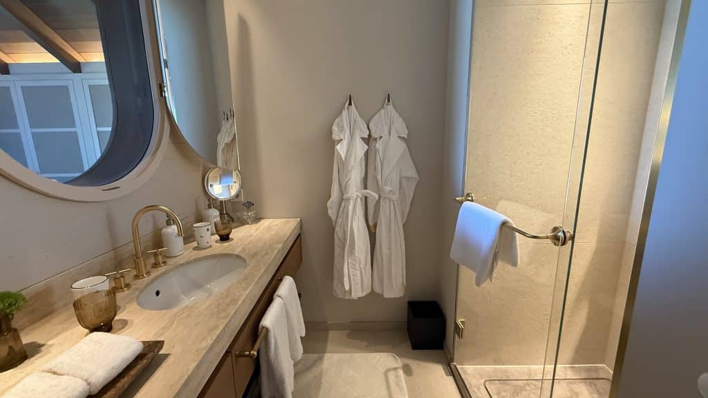 Zusammenfassend gibt es auch hier, mit Ausnahme der Größe, nichts auszusetzen. Schade ist natürlich, dass man in einem Resort dadurch keine Badewanne hat, was den einen oder anderen stören mag. Für den limitierten Platz hat man meines Erachtens aber viel herausgeholt und eine schöne Atmosphäre – etwa durch dimmbare Lichter – geschaffen.