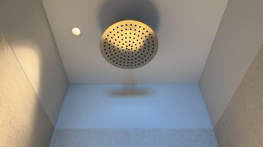 Einen wirklich guten Eindruck hat bei mir auch die Regendusche hinterlassen. Beide Duschköpfe weisen einen hervorragenden Wasserdruck auf und man hat zudem auch ausreichend Platz.