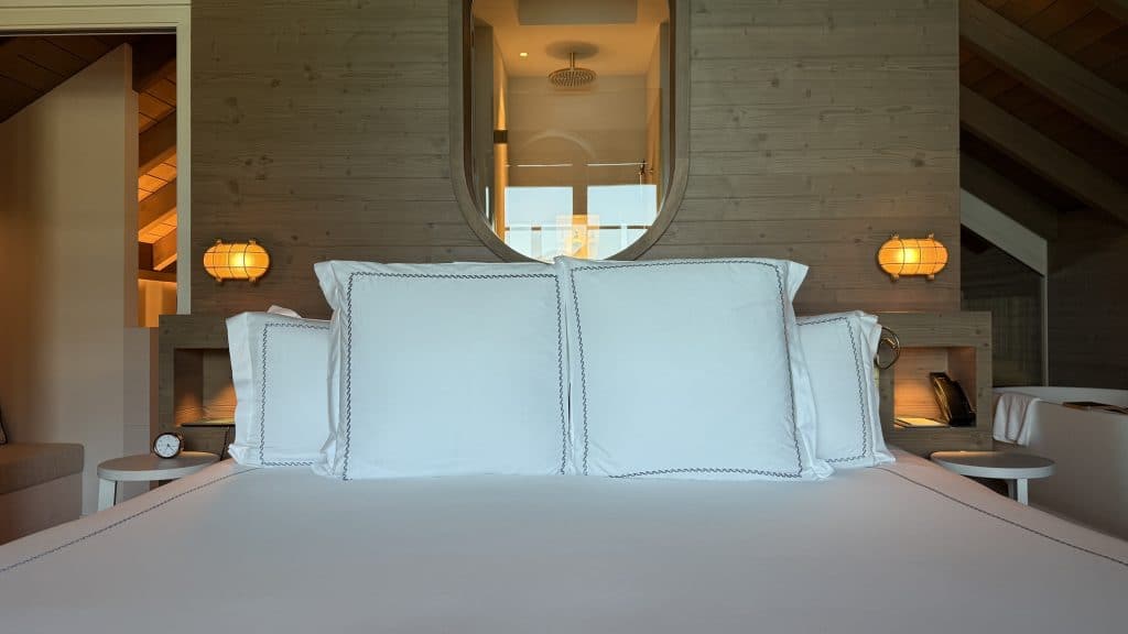 Beginnen möchte ich bei meiner Rosewood Schloss Fuschl Bewertung mit einem Blick auf das Obergeschoss, in dem sich das Schlafzimmer befindet. Dieses hat durch die Dachschrägen viel Charme und kommt ausgesprochen großzügig daher.