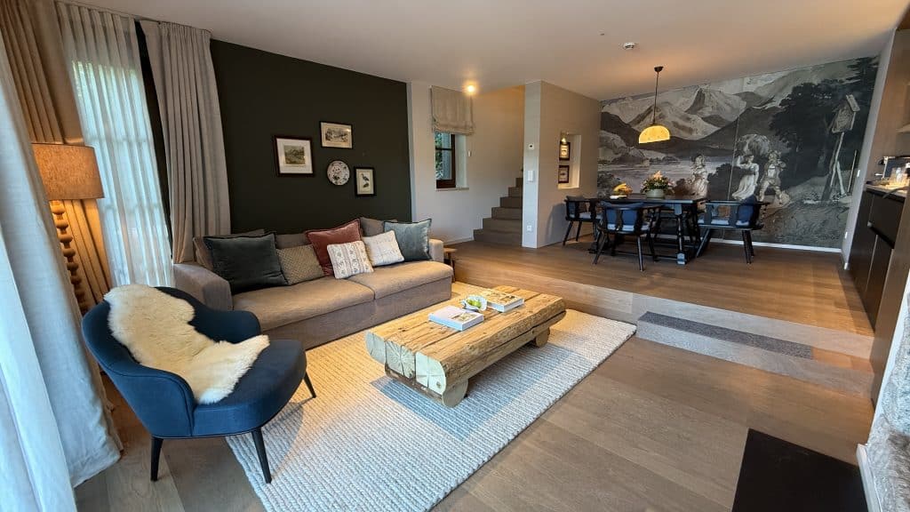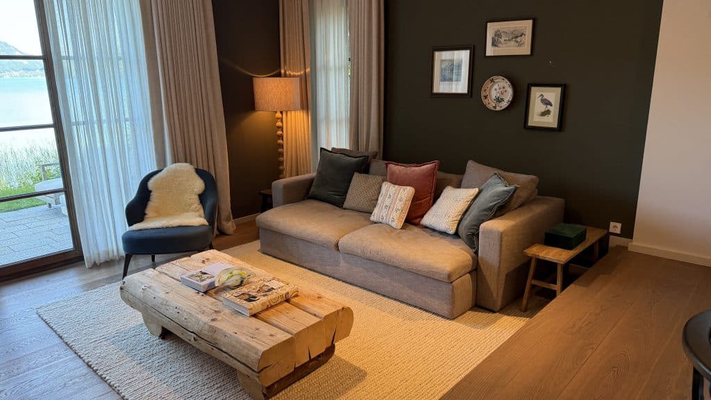 Bei meiner Rosewood Schloss Fuschl Bewertung ist mir bei den Junior Suiten ein recht typischer Schnitt aufgefallen – in einem großen Zimmer gibt es zuerst den Schlaf- und dann den Wohnbereich.