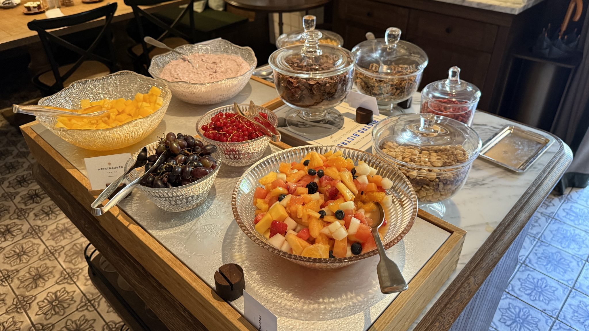 Das gilt auch für die Qualität der verschiedenen kalten Optionen, die ich probiert haben – von Aufschnitt und Käse über die Brötchen bis hin zum Bircher Müsli oder den Beeren.