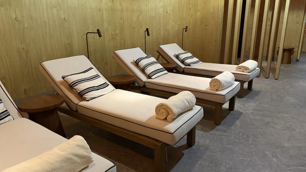 Zudem gibt es hier auch noch einmal weitere Liegen, wobei ich den Raum als nicht ganz so atmosphärisch wahrgenommen habe wie den Rest des Spas im Rosewood Schloss Fuschl.