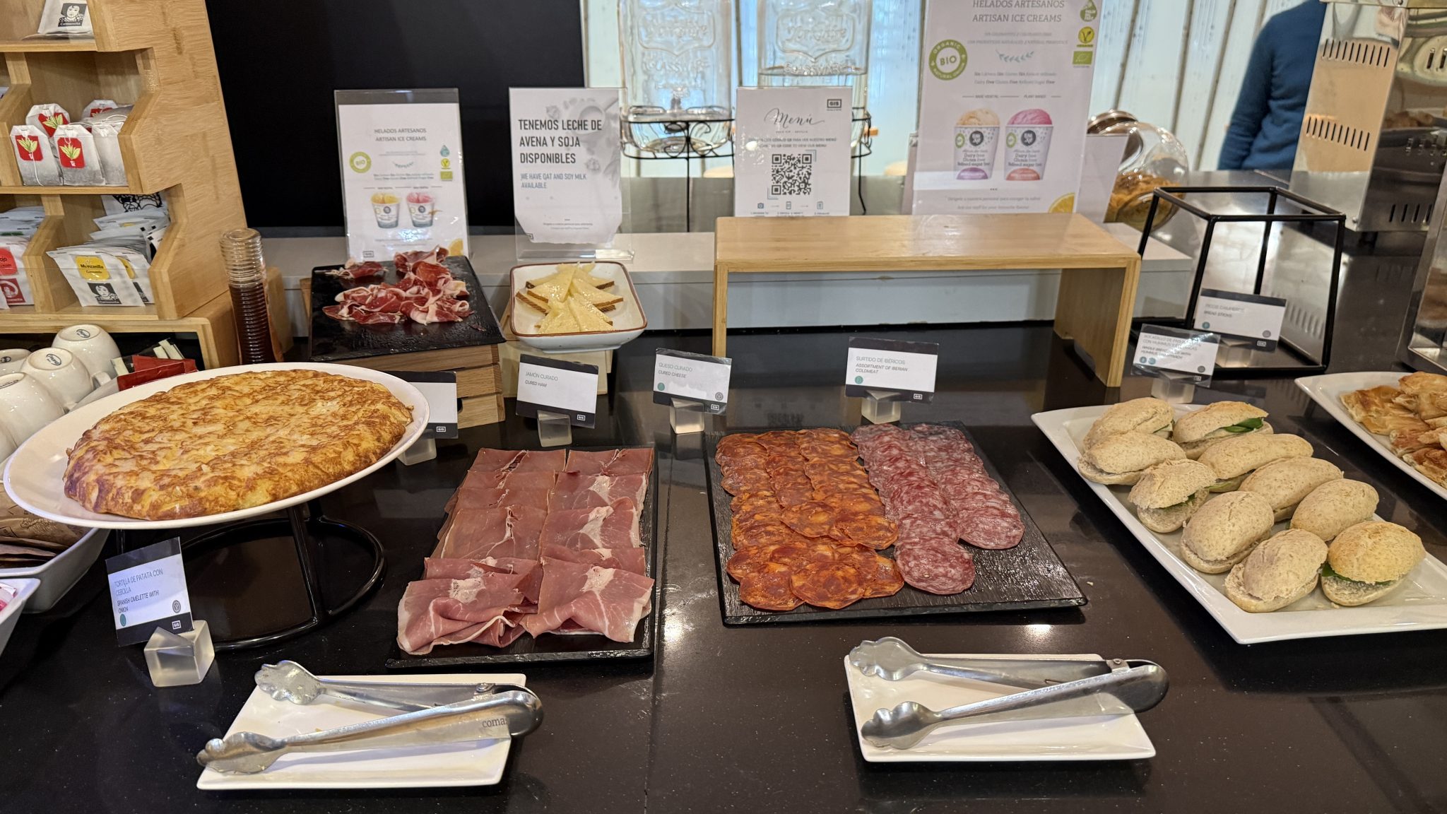 Das liegt auch daran, dass es ansonsten noch eine recht umfangreiche Auswahl an Wurst, Sandwiches und sogar eine Tortilla nebst verschiedenen Brötchen gibt.
