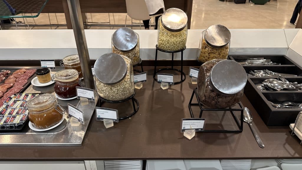 Darüber hinaus gibt es am Buffet der Priority Pass Lounge in Malaga auch noch verschiedene Müslisorten sowie passend für Spanien auch Tortilla.