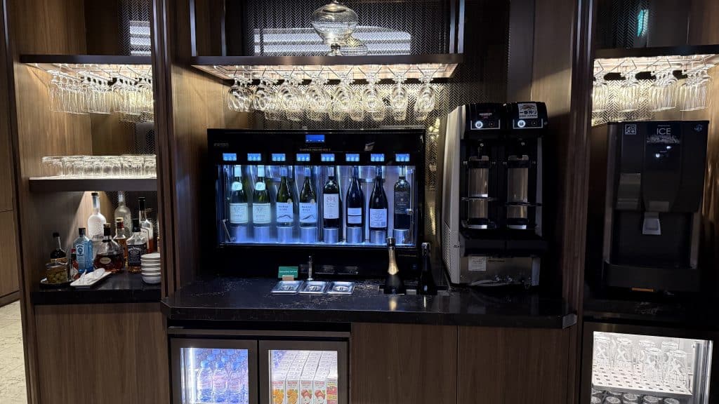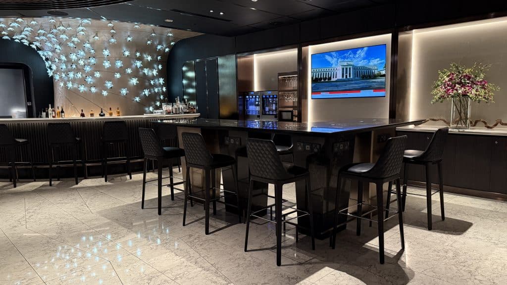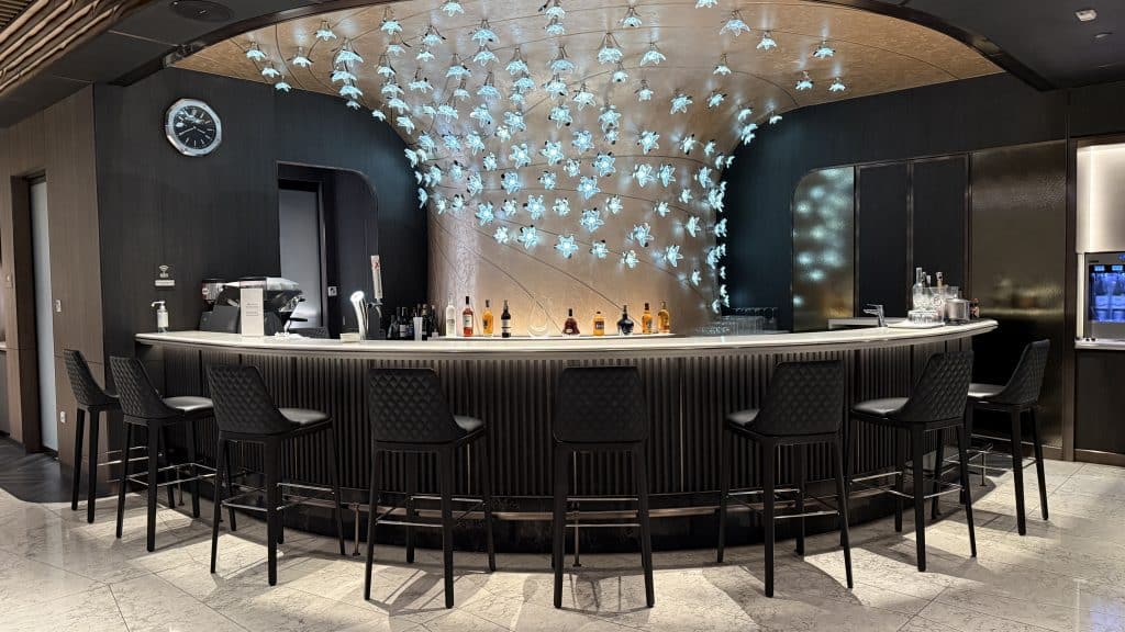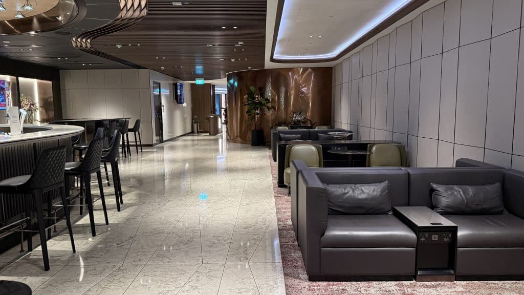 Auf knapp über 1.000 Quadratmetern bietet die Lounge offiziell 130 Sitzplätze, wobei es meist deutlich ruhiger ist. Das schicke Design merkt man sofort, wenn man die Lounge betritt und die sehr stilvolle Bar sieht.