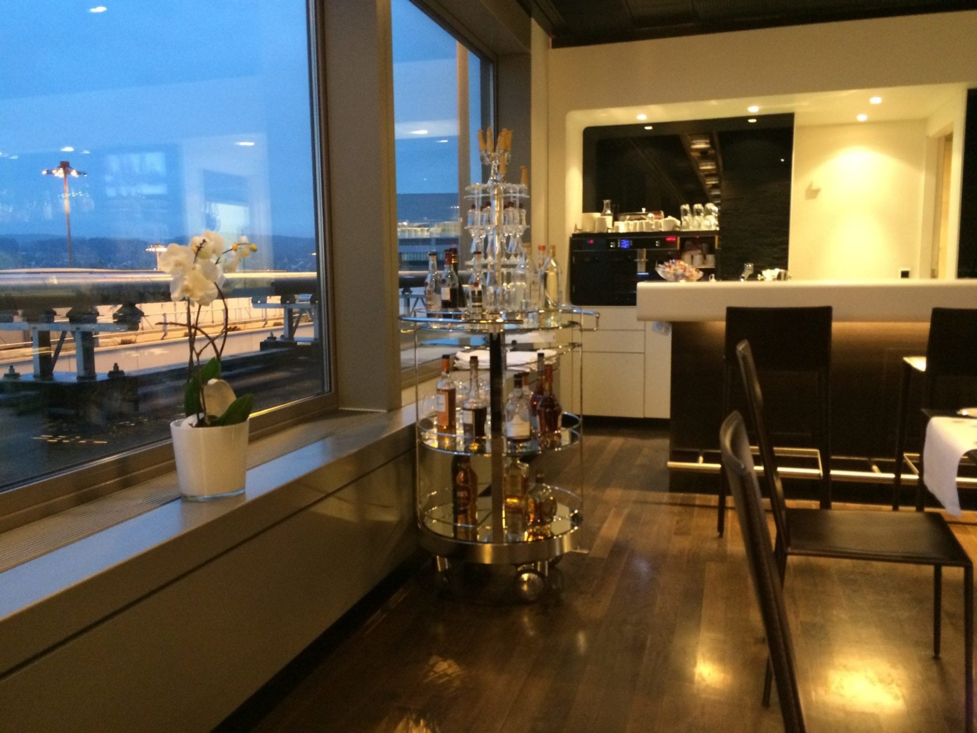 Die einzige Schwäche, die ich bei der Swiss First Class Lounge Zürich A wahrgenommen habe, ist das begrenzte Tageslicht in Verbindung mit dem fehlenden Ausblick (die Lounge ist zum Terminal und Parkplatz hin ausgerichtet).