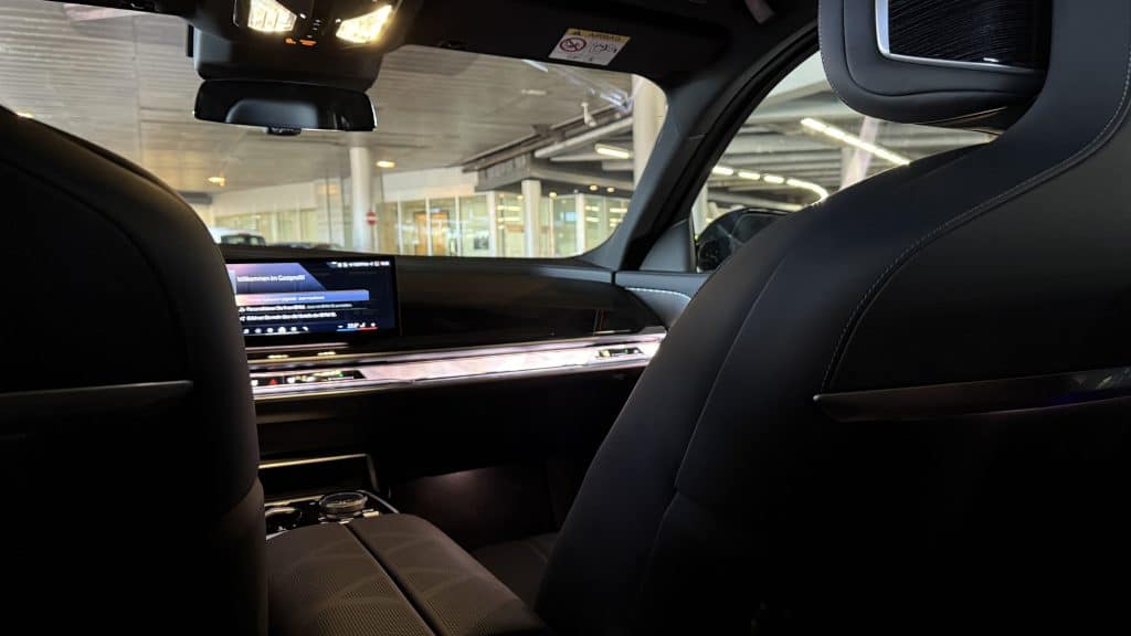 Eine große Besonderheit der Swiss First Class Lounges ist der Transferservice. Wer in der First Class in Terminal E ankommt, wird direkt am Flugzeug abgeholt und mit einer modernen Elektro-Limousine von BMW in die Lounge gebracht – hier erwartet einen eine private Sicherheitskontrolle.