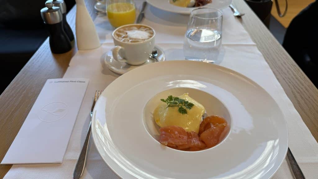 Bei meinem zweiten Aufenthalt in der Swiss First Class Lounge Zürich A war mein Erlebnis im Restaurant etwas weniger positiv. Der Service war mit Blick auf die vielen Gäste ziemlich überfordert und auch nicht allzu freundlich. Wenige Minuten nach der Frühstückszeit bedurfte es zudem einiger Diskussion, um noch Eggs Benedict bestellen zu dürfen – in einer First Class Lounge empfinde ich das doch als etwas befremdlich. Qualitativ hatte ich aber auch hier nichts auszusetzen.