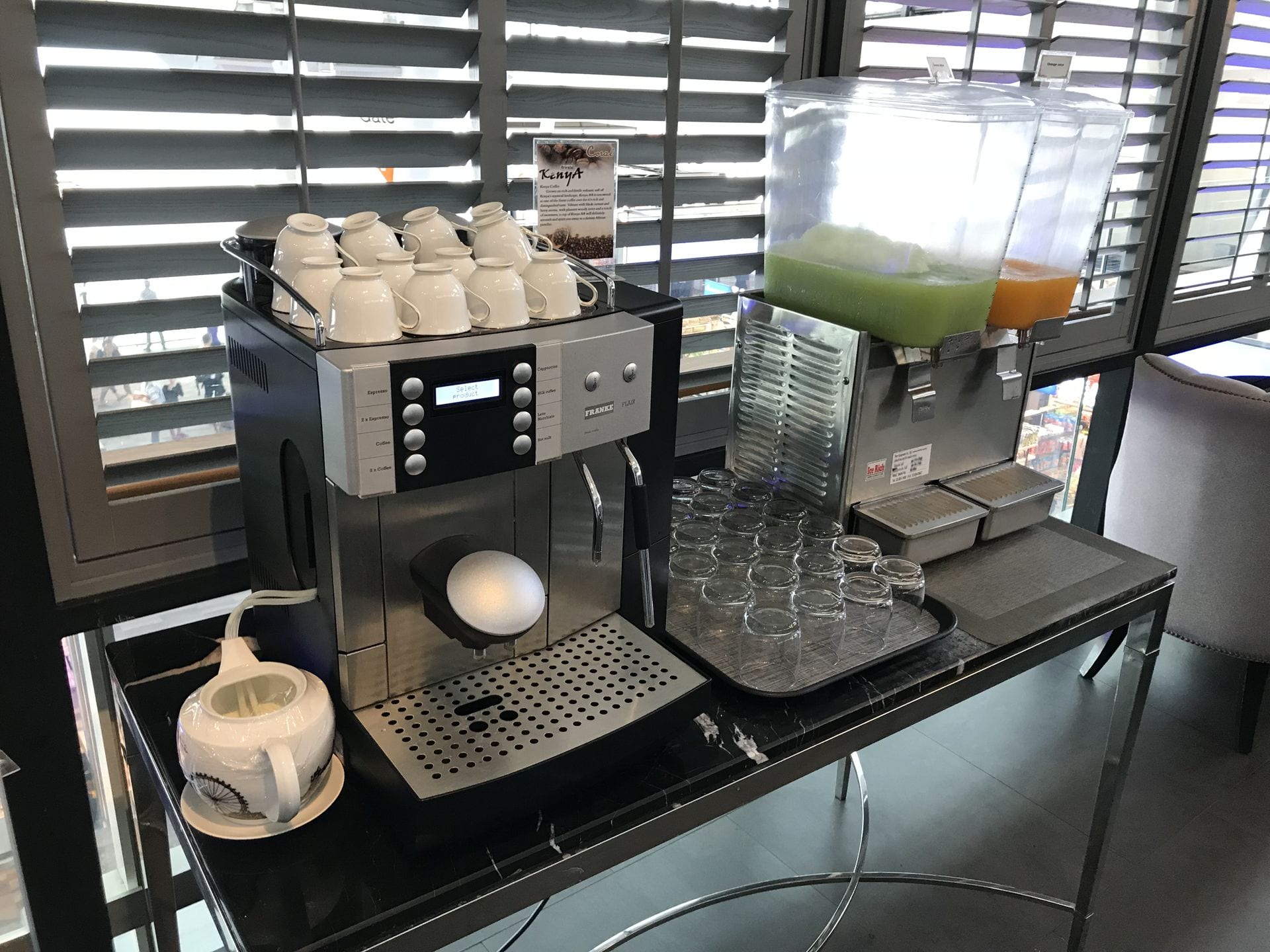 Wenn ich die Fotos sehe, unterscheiden sich First und Executive Lounge hauptsächlich durch die Möbel ;). Die Executive Lounge war bei meinem Besuch im Dezember allerdings ziemlich voll, so dass man schon nach einen vernünftigen Platz suchen musste. Die Getränke-Auswahl war identisch zum oben gezeigten und es gab vormittags Frühstück inkl. Rührei und Würstchen, Nudelsuppe und gebratene Nudeln. Die Executive-Lounge ist für die Anzahl Gäste einfach etwas klein. Man kann da mal auf einen Kaffee oder Snack vorbeischauen, Geld würde ich dafür definitiv nicht bezahlen. Die oben gezeigte First-Lounge hat vermutlich deutlich weniger Gäste.