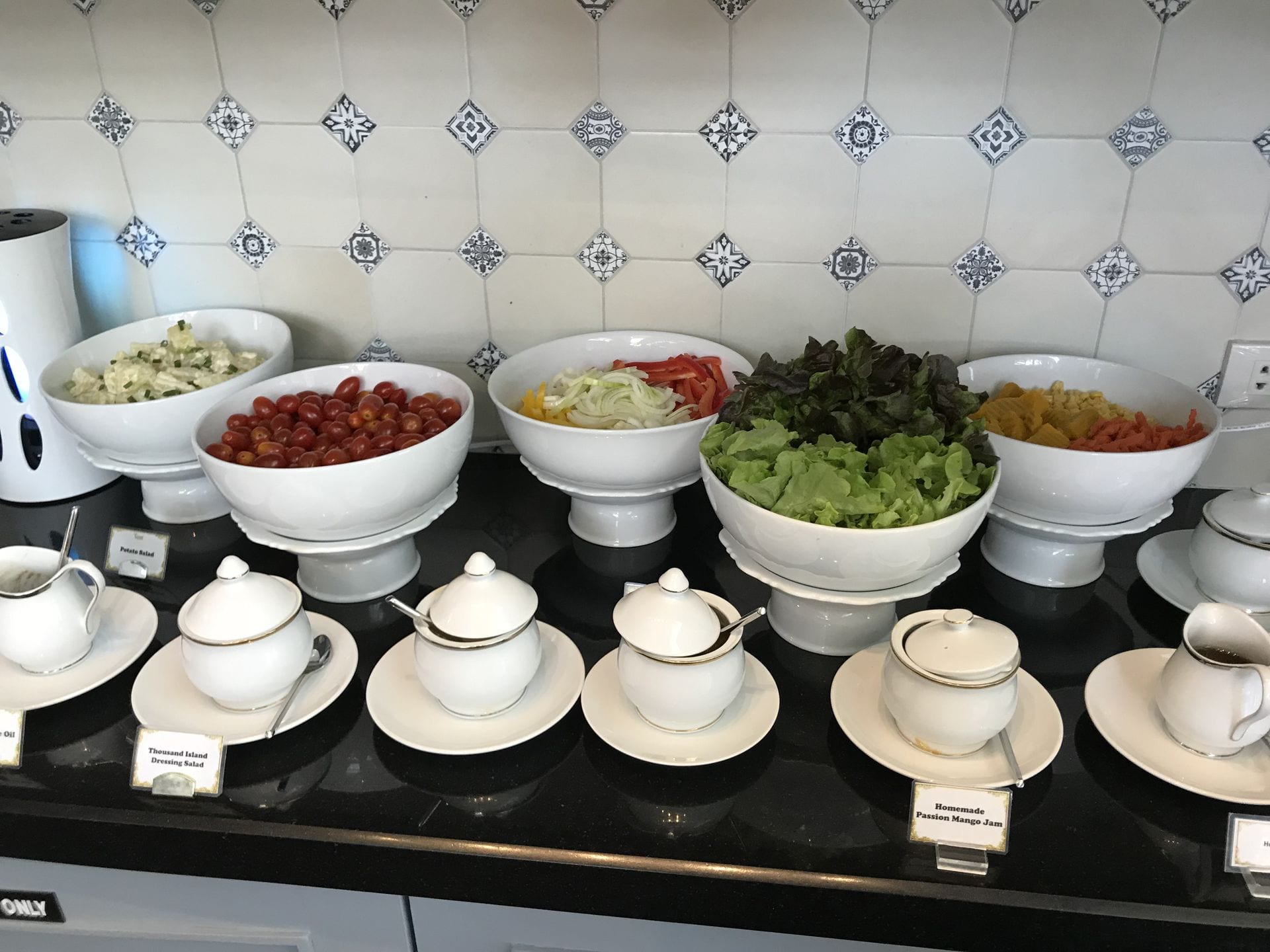 Leider war die Auswahl an Speisen wieder eingeschränkt. So wirbt die Lounge zwar mit einem “à la carte” Service, dieser wurde jedoch leider während meines Aufenthaltes nicht angeboten. Das vorhandene Buffet bestand aus einem Salatbuffet sowie einem Buffet mit warmen Speisen. Hier gab es drei verschiedene Gerichte, dazu Reis.
