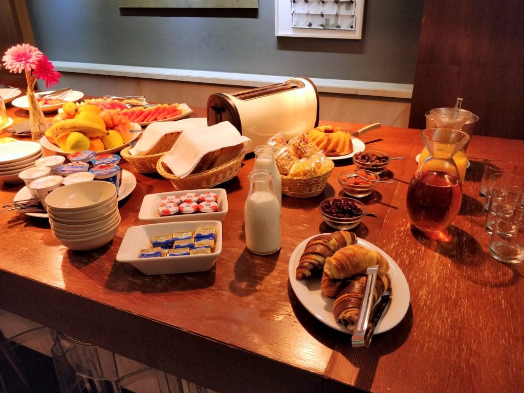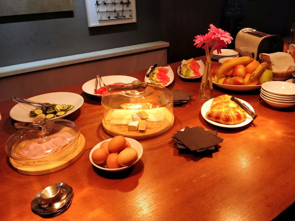 Hier stand am Morgen ein kleines Buffet mit einigen Speisen bereit – darunter nicht unbedingt inspirierende Optionen, aber zumindest die “klassischen Optionen”. Was ich allerdings ein wenig verstörend fand, war der Fakt, dass keinerlei Kühlung vorhanden war. Käse, Schinken und andere Speisen standen mehrere Stunden ungekühlt herum – hygienisch ist anders.