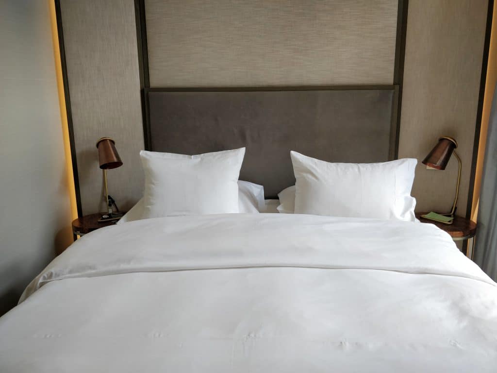 Im Prinzip gibt es nur ein Queen Bed mit zwei Nachttischen – dieses immerhin ist sehr bequem und kommt mit guter Bettwäsche daher.