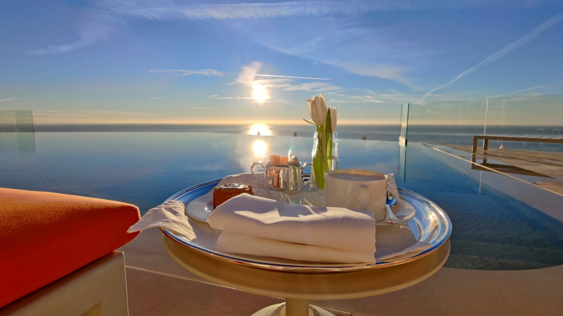 Ein ganz besonderes Erlebnis ist der Pool auch zum Sonnenaufgang, denn hier erwartet einen ein schier surrealer Ausblick über die Küste.