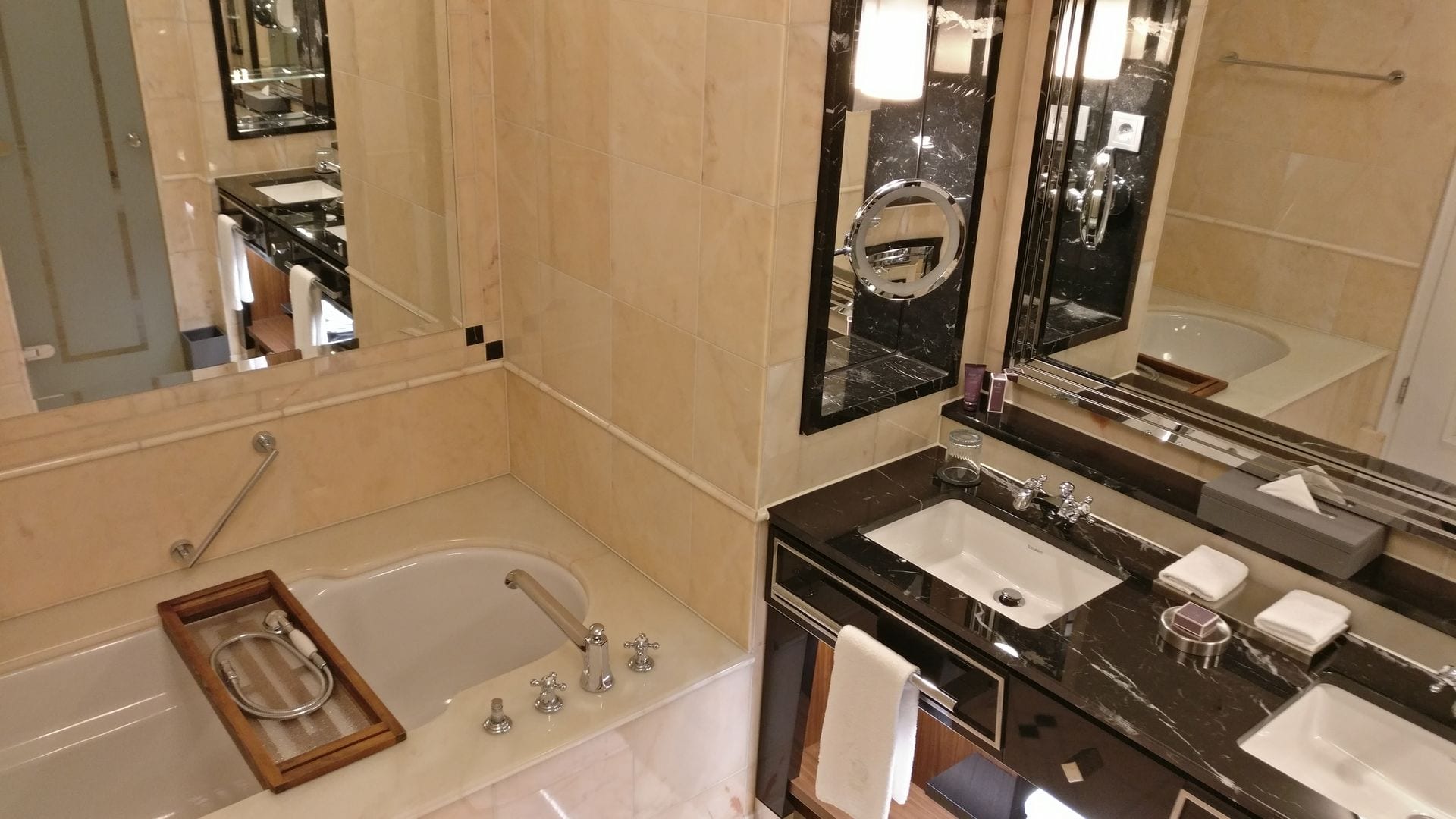 Dort stehen auch die Diptyque-Pflegeprodukte in großen Behältern daher, die man entweder zur Badewanne oder in die Dusche mitnehmen kann – dieselben Produkte haben mir auch bei meiner Mandarin Oriental New York Bewertung sehr zugesagt.