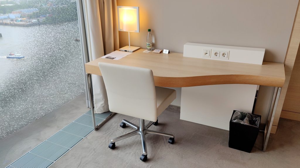 Die Einrichtung der Zimmer im Westin Hamburg entspricht dem üblichen Stil der Marke, was aber auch bedeutet, dass das gesamte Design des mittelgroßen Zimmers etwas kühl wirkt.