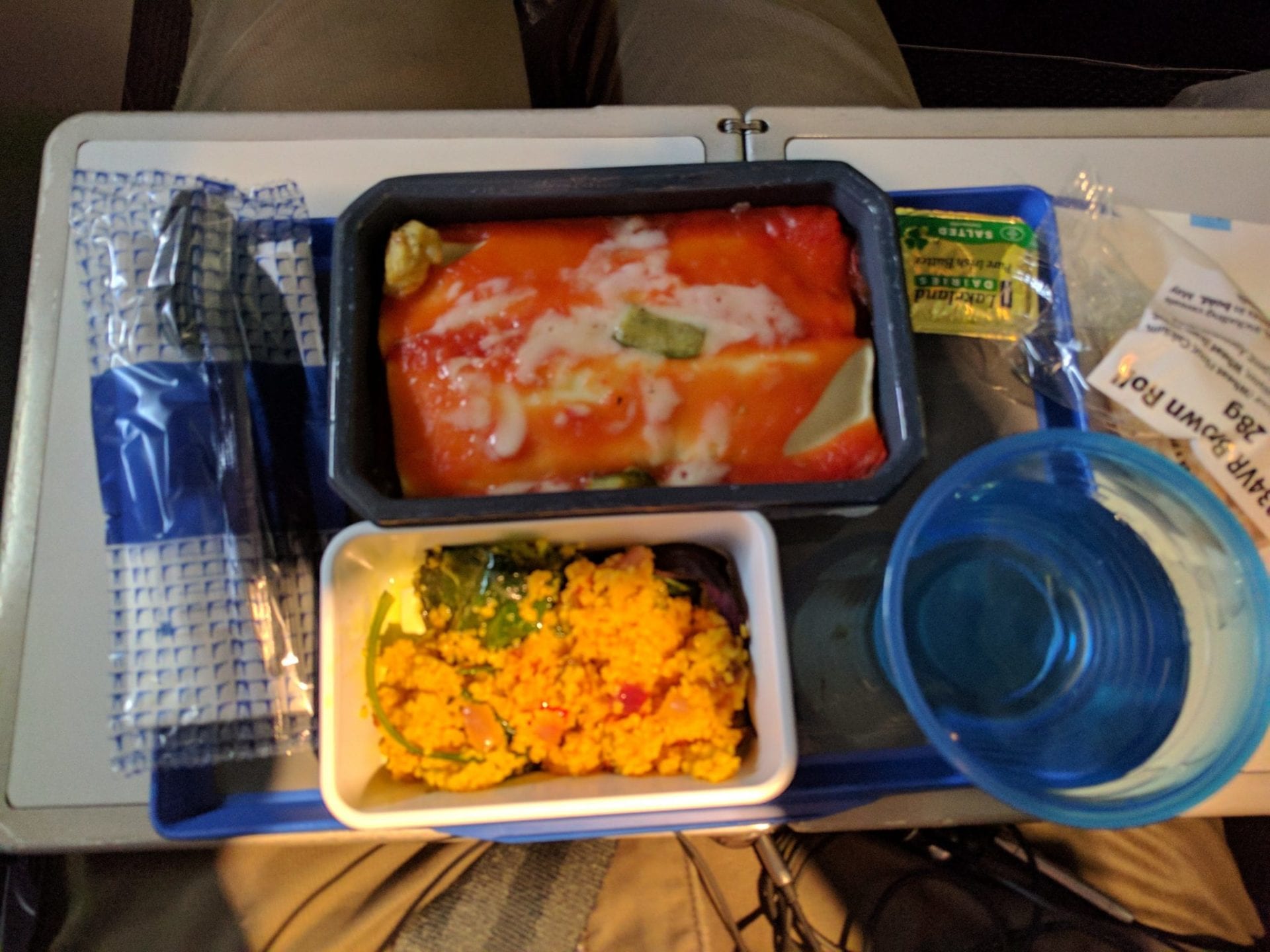 Gute Qualität, wie es etwa in der Turkish Airlines oder Emirates Economy Class geboten wird, sollte man hier aber nicht erwarten. Was mir positiv auffiel war, dass große Dosen und Wasserflaschen bei den Getränkerunden verteilt wurden und nicht die sonst in der Luftfahrt typischen 200 oder 250 Millimeter Döschen. Die ‘award winning snacks’ waren auch in Ordnung, allerdings nicht unbedingt weltbewegend.