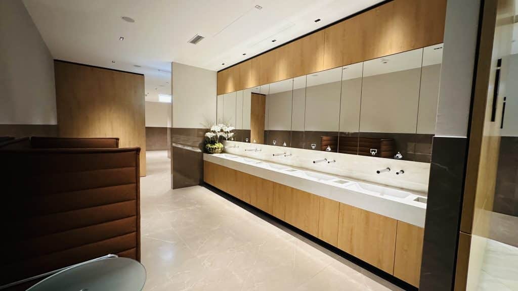Die Toiletten und der Waschbereich waren äußerst sauber und wurden in der Zeit, die ich in der Lounge verbrachte, immer wieder gereinigt.