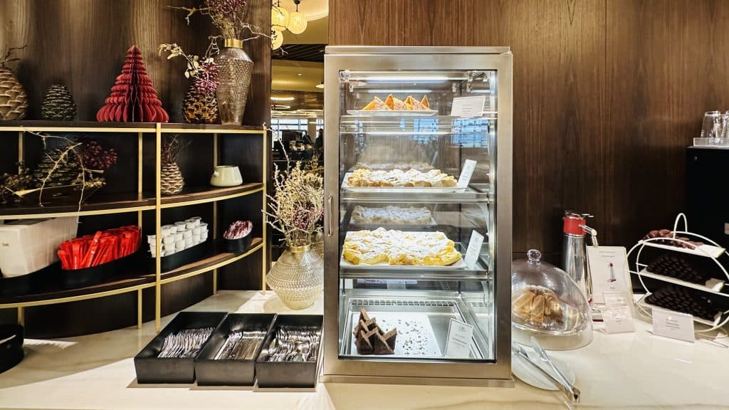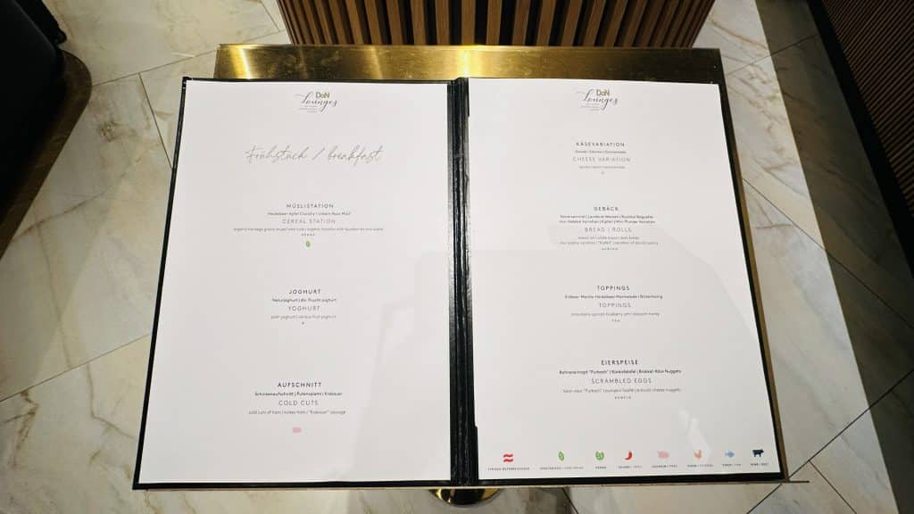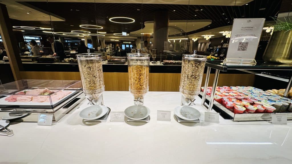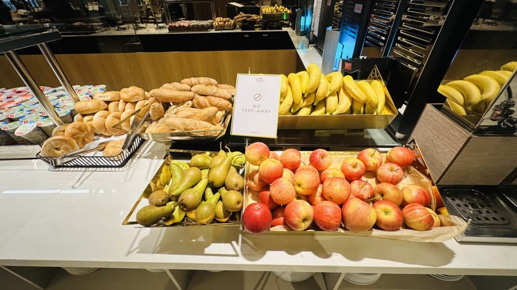 Das Buffet ist im mittleren Bereich der Lounge angeordnet. Da ich die VIENNA Lounge am frühen Morgen besuchte, wurde Frühstück angeboten.