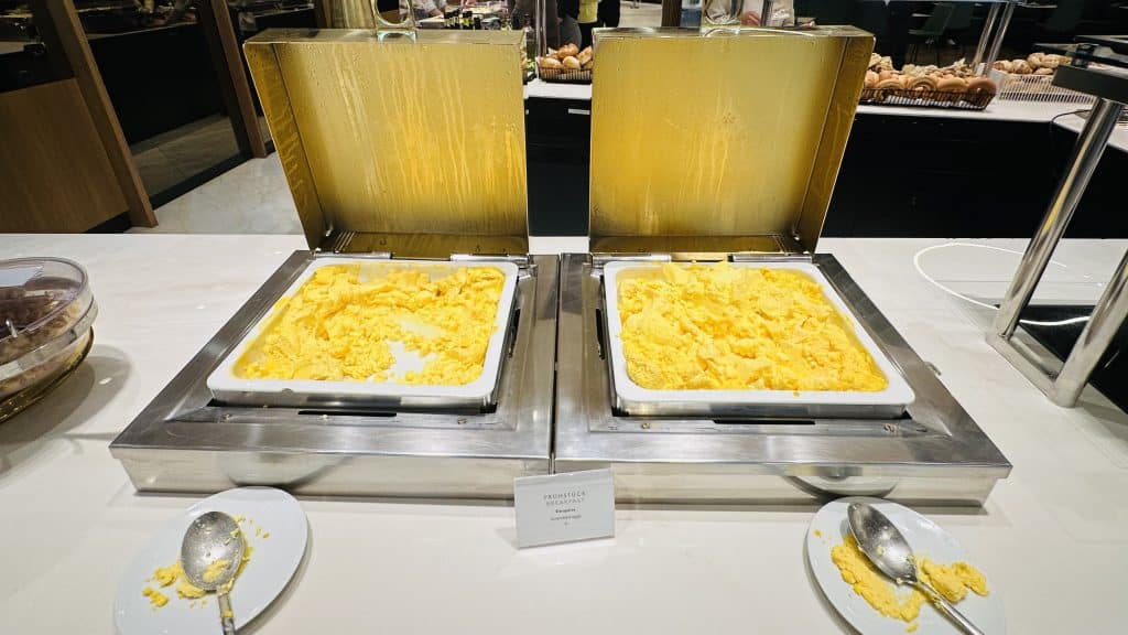 Es wurden Rühreier als Eierspeise angeboten. Andere Variationen habe ich nicht gesehen.