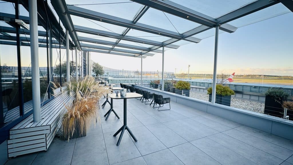 Noch mehr Sitzgelegenheiten befinden sich im linken Bereich der VIENNA Lounge und bieten einen Blick auf die Terrasse.