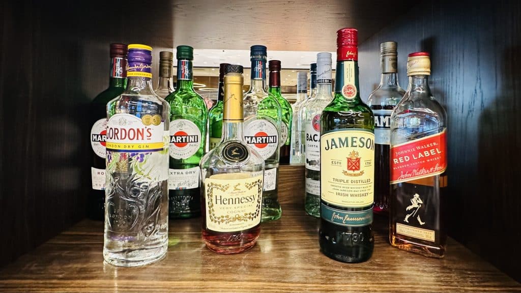 Bereits am frühen Morgen waren verschiedene Weinsorten und andere alkoholische Getränke in der Bar aufgebaut.