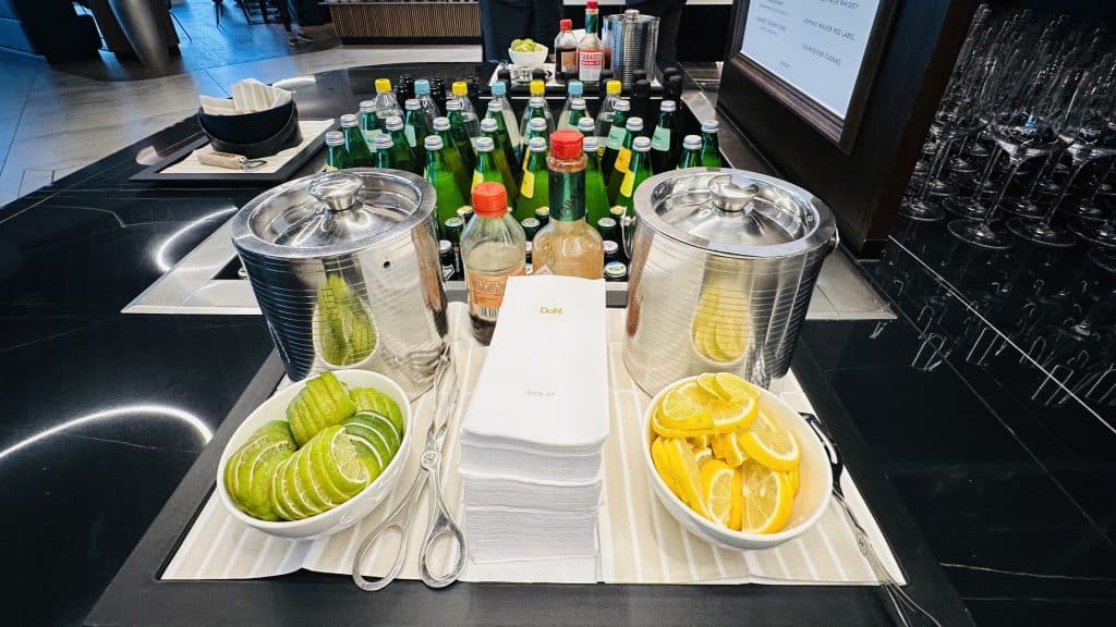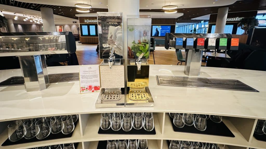 Gegenüber der Weinbar befinden sich die Zapfstationen für Wasser und Softdrinks.