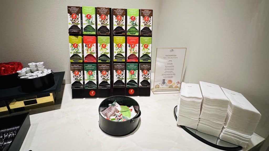 Direkt daneben gibt es eine umfangreiche Auswahl an Tees, die für jeden Geschmack etwas zu bieten hatten.